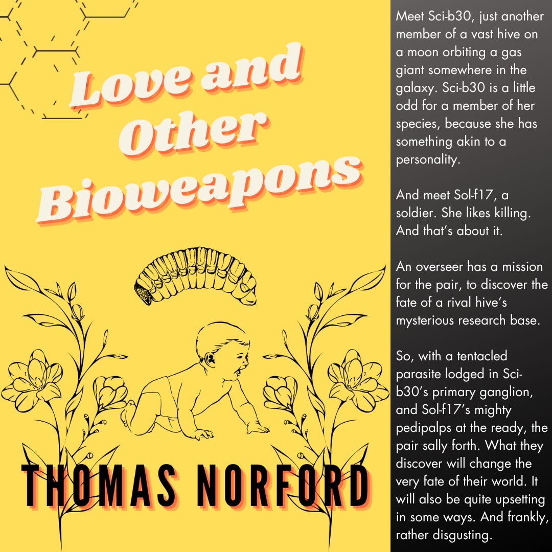 It’s called Love and and Other Bioweapons and part one of four is below. If you’d prefer to read it on a Kindle or whatever, this link will take you to a Google Drive folder where you can get it as a PDF or ePub.